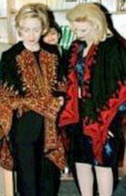 And here is Hillary Clinton in Palestinian dress with Suha Arafat back in her even-handed, fair days:
