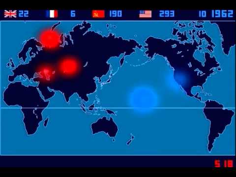 Each nation gets a blip and a flashing dot on the map whenever they detonate a nuclear weapon, with a running tally kept on the top and bottom bars of the screen. Hashimoto, who began the project in 2003, says that he created it with the goal of showing”the fear and folly of nuclear weapons.” It starts really slow — if you want to see real action, skip ahead to 1962 or so — but the buildup becomes overwhelming.