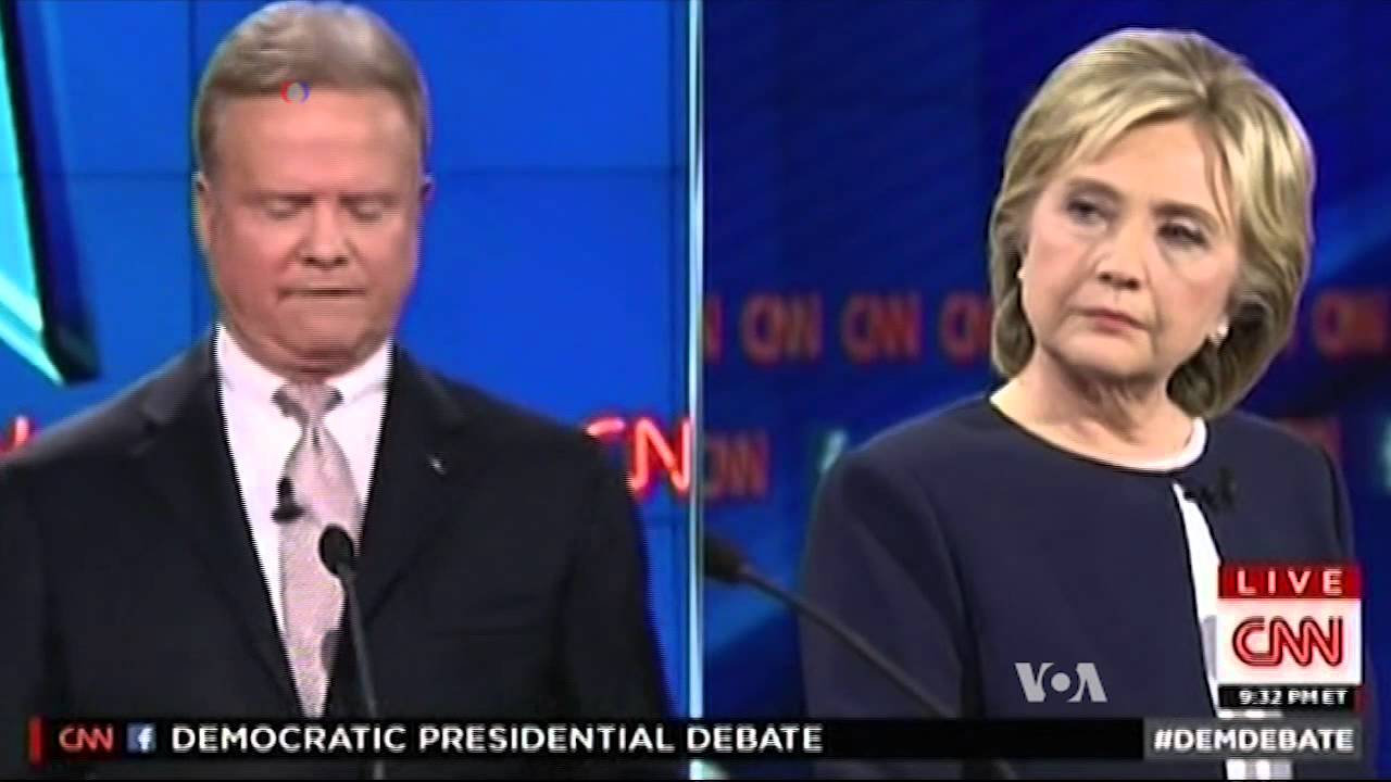 VOA News: “Clinton, Sanders Clash Over Syria, Gun Control in First Debate”
