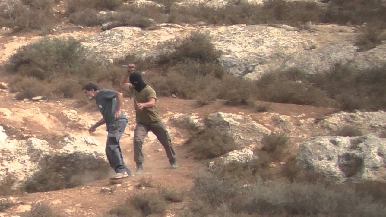A video of the incident published on the online 972 magazine shows a masked settler kick, push, and threaten Ascherman with a knife, appearing to attempt to cut him several times.