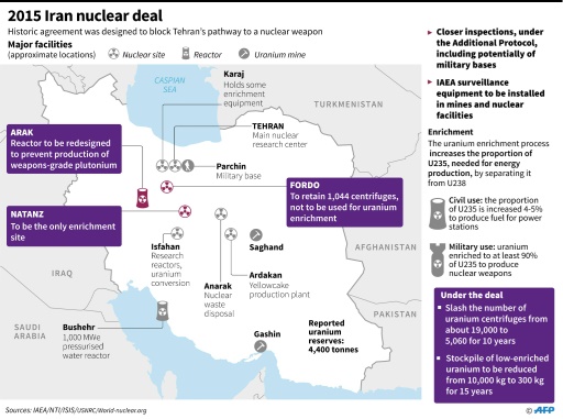 AFP / AFP. Map and factfile on the 2015 Iran nuclear deal.