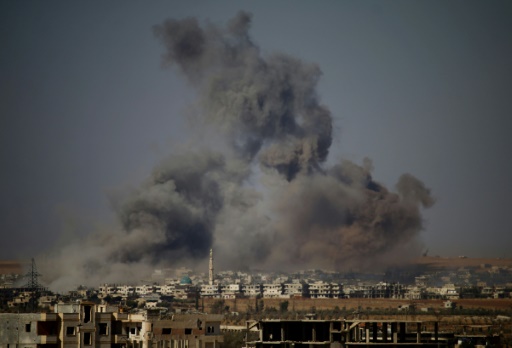AFP / Mohamad ABAZEED. Smoke rises above a rebel-held town east of the city of Daraa during airstrikes by Syrian regime forces on June 30, 2018.