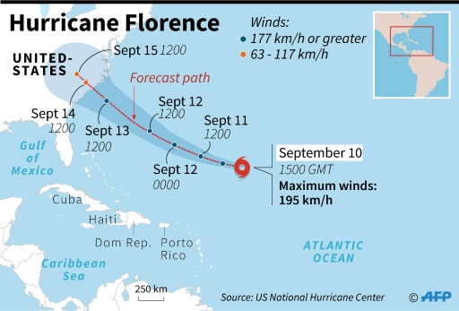 AFP / AFP. Map showing the forecast path of Hurricane Florence.