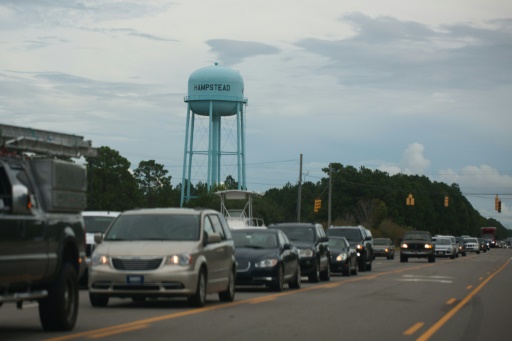 AFP / Logan Cyrus. Vehicles line State Route 17 as people evacuate the coast of North Carolina before the arrival of Hurricane Florence.