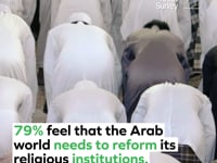 Further, fully 79%, almost 4 in 5, say that the Arab world desperately needs to reform its religious institutions.