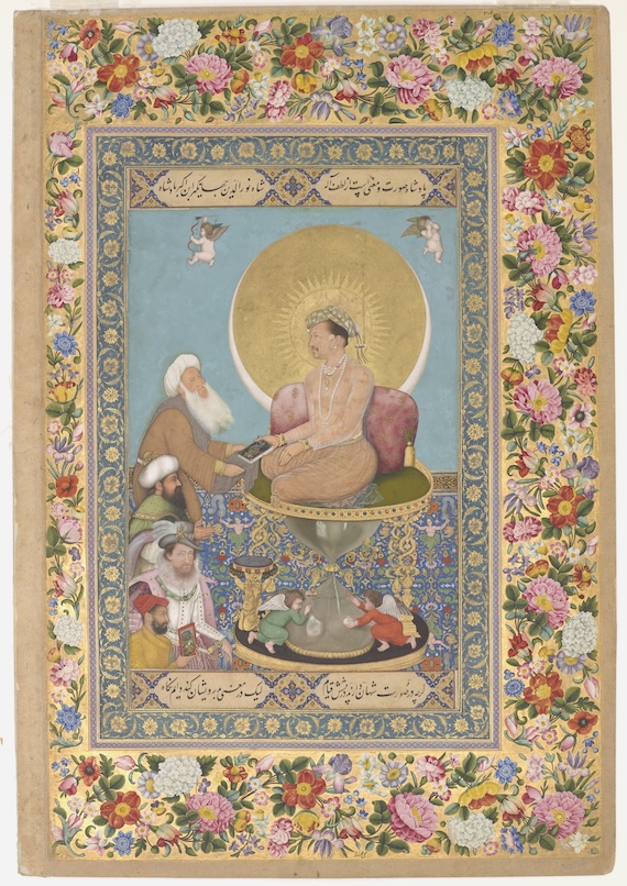 (Artist) Bichitr. Mughal Emperor Jahangir Preferring a Sufi Shaikh to Kings, ca. 1615-1618. From the St. Petersburg Album. Freer Gallery. Smithsonian Institution.