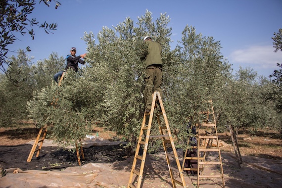 Palestinian farmers harvesting olives in the Jenin area, November 2015. Photo by TrickyH on Wikimedia Commons (CC BY-SA 3.0).