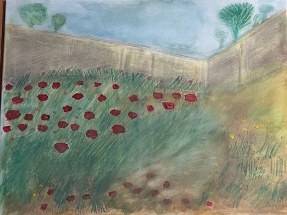 Khavaran, where several thousand political prisoners were buried in unmarked graves. Painting by Fariba Amini.