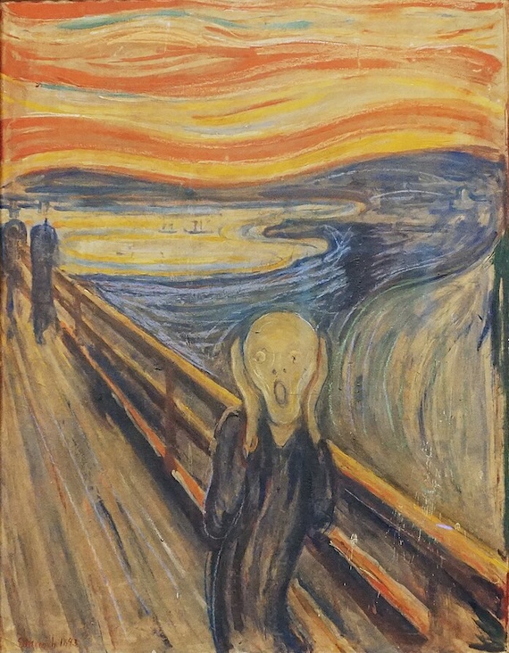 The Scream by Edvard Munch, Nasjonalgalleriet, Oslo. Public Domain. Via Wikimedia Commons.