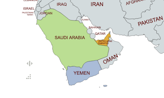 Yemen, Saudi Arabia and the United Arab Emirates, Via Mapchart