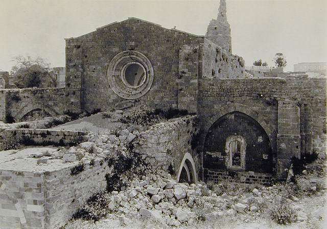 Historical photo of Omari Mosque, Gaza, after British bombardment of 1917. Public Domain. Via Picryl
