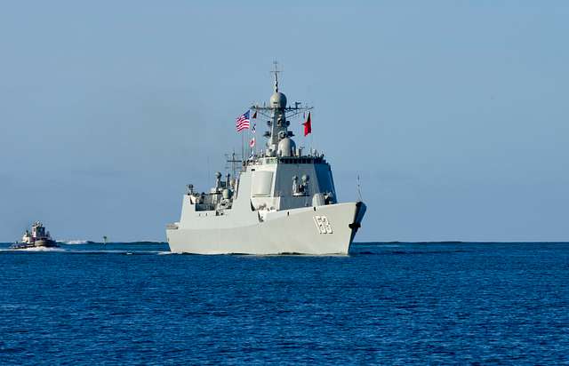 PEARL HARBOR (Jun. 29, 2016) The Chinese People’s Liberation Army (Navy) (PLA(N) Luang II class guided-missile destroyer Xian (153) arrives at Joint Base Pearl Harbor-Hickam for Rim of the Pacific (RIMPAC) 2016. US Navy. Public Domain. Via Picryl