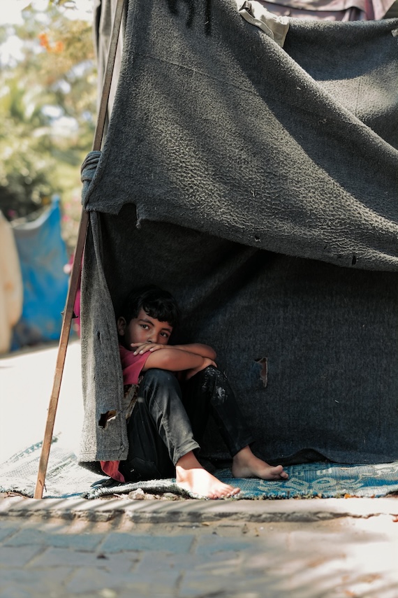 File photo of makeshift shelter in Gaza by Hosny salah: https://www.pexels.com/photo/young-boy-sitting-in-makeshift-shelter-in-gaza-36038665/