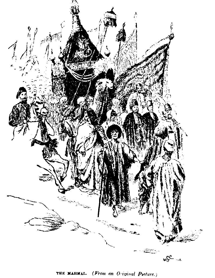 female slave, who became the favourite wife of Sultan as-Salih’ Najmu ‘d-din, and who on the death of his son (with whom terminated the dynasty of Aiyub) caused herself to be acknowledged Queen of Egypt, performed the hajj in a magnificent litter borne by a camel. And for successive years her empty litter was sent yearly to Makkah, as an emblem of state. After her death, a similar litter was sent each veer with the caravan of pilgrims from Cairo and Damascus, and 5 is called muhmal or mahmil, a word signifying that by which anything is supported.